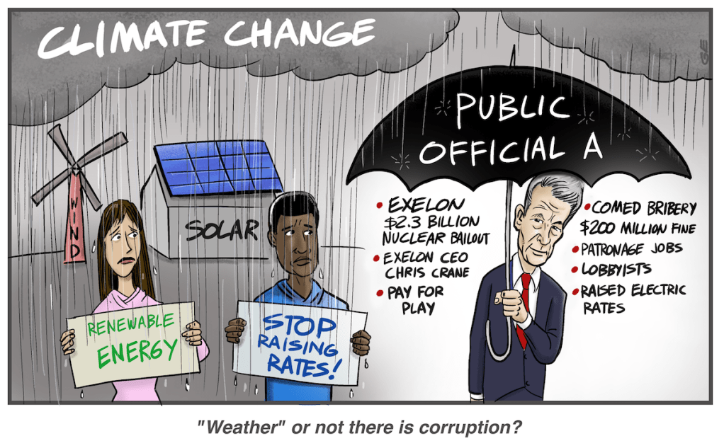 We urge the governor and the legislature to begin the restitution process by repealing the $2.3 billion 2016 nuclear bailout. Further, and as others like Crain’s Joe Cahill have suggested, Crane must step down completely from all functions at Exelon.