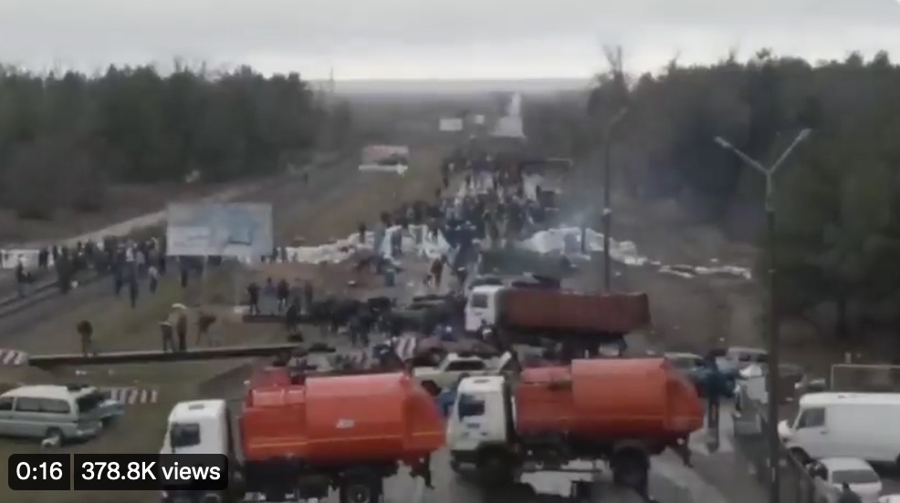 Headline photo of the citizen protest at the Zaporizhzhia Nuclear Power plant before it was bombarded, by Twitter @ng_ukraine
