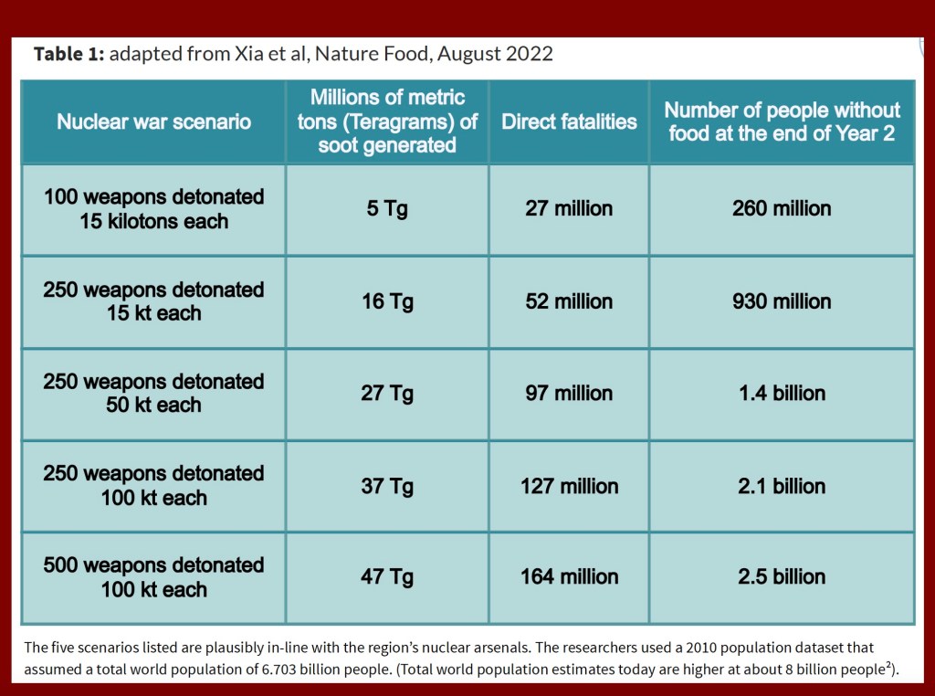 “Using” as many as 500 weapons of 100 kilotons each would see 64 million direct fatalities and 2.5 billion left without food 24 months later.