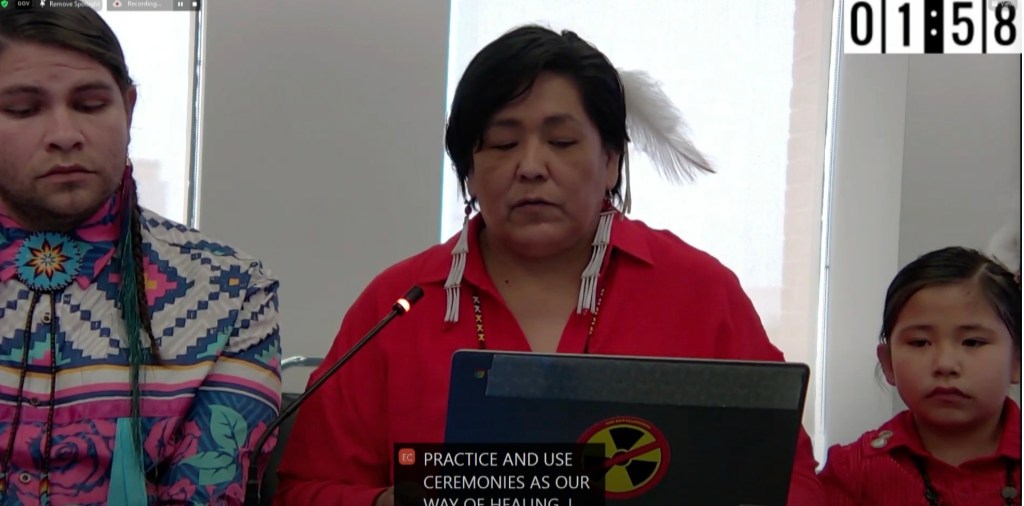 Eric Jantz, legal director at the New Mexico Environmental Law Center and representing the tribal speakers, summed up their requests in his opening remarks, noting in particular the absence of consent. What they wanted, he said, were three things: