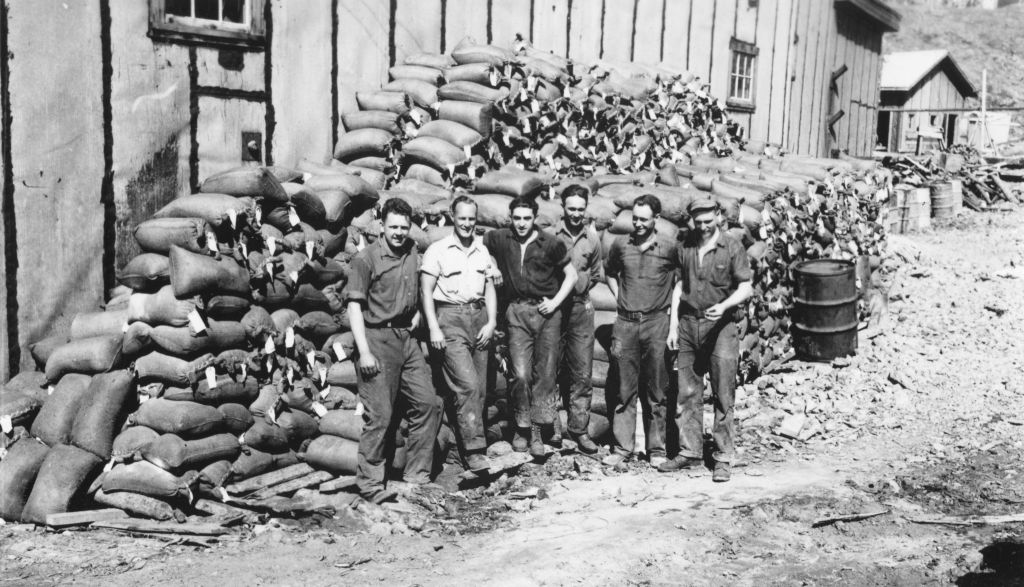 Images by the Montreal photographer Robert Del Tredici focus on the Dene hunters and trappers at Great Bear Lake who were hired by Eldorado to carry the sacks of radioactive ore on their backs for loading onto barges that transported the ore to Port Hope. Many of them subsequently died of cancer.