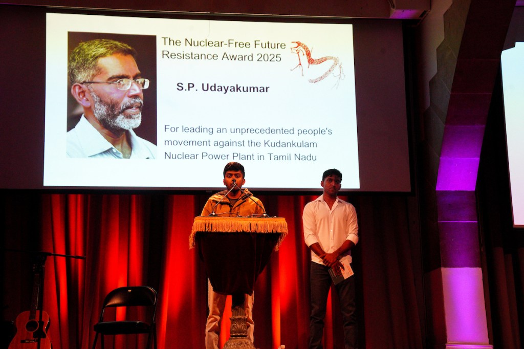 Courage is the first word that comes to mind when describing the 2025 recipient in the category of Resistance. For standing up to the Indian authorities in opposition to the construction of the massive Russian nuclear power plant at Kudankulam in Tamil Nadu, S.P. Udayakumar and thousands of other villagers, farmers and fisherfolk, the majority of them women, have been hounded, persecuted, arrested and prosecuted.