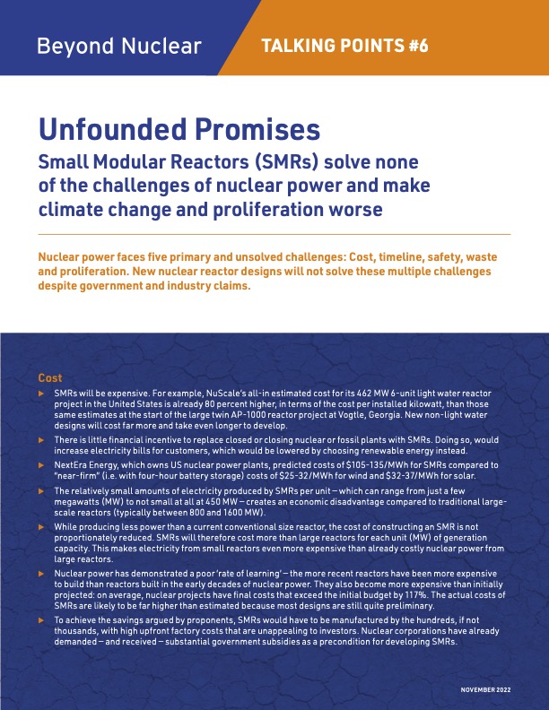 Talking Points #6: Unfounded Promises. Small Modular Reactors solve none of the challenges of nuclear power and make climate change and proliferation worse.